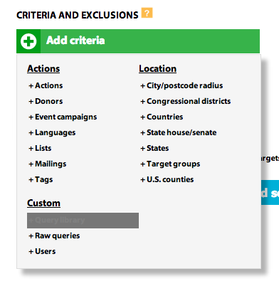 Let’s say you want to send your welcome email to users who took their first ever action with you yesterday. Click on “Add Criteria” → Query Library and select new-to-database users (which may be different than new-to-list users, for example, if you have multiple lists).